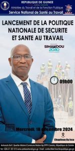 Dans quelques heures, le Ministère du Travail et de la Fonction Publique, dirigé par Faya François Bourouno, en collaboration avec le Service National de Santé au Travail (SNST), procédera au lancement officiel de la Politique Nationale de Sécurité et Santé au Travail. L’événement se tiendra ce mercredi à 9 heures, au chapiteau By Issa.