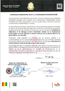 Le Gouvernement de la République de Guinée a annoncé, par le biais d’un communiqué interministériel, une interdiction stricte de la transhumance transfrontalière sur tout le territoire national, valable du 1er janvier 2025 au 1er mars 2026. Cette mesure vise à prévenir les conflits entre agriculteurs et éleveurs, à préserver l’environnement et à mieux gérer les ressources naturelles du pays.