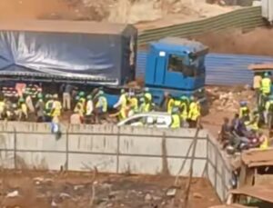 Depuis lundi 3 février, le chantier de la future Cité Administrative de Guinée, situé dans la commune de Ratoma, reste le théâtre de revendications sociales. Ce mercredi, et même ce samedi, les ouvriers poursuivent leur grève pour défendre leurs droits. À 10h21, des dizaines d’ouvriers du centre directionnel de Koloma étaient encore dans les rues, manifestant pour leurs revendications.
